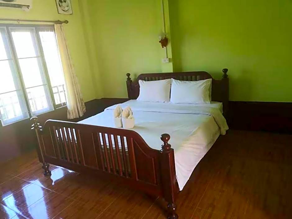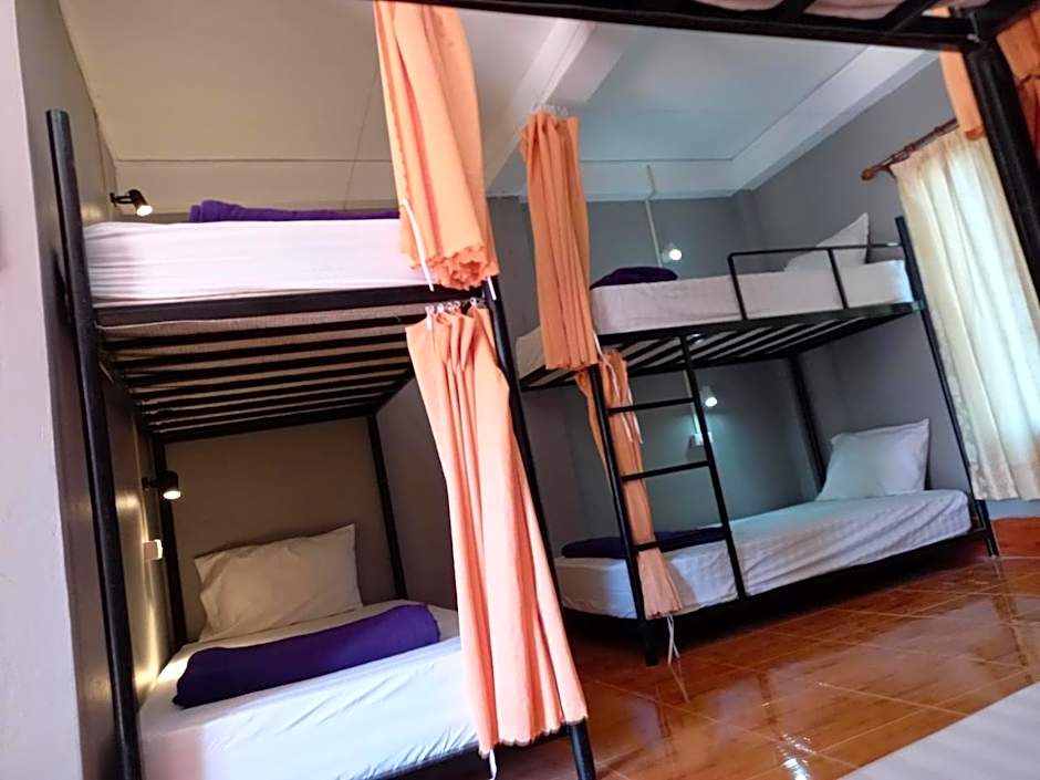This bed in dormitory features a tile/marble floor and air conditioning.